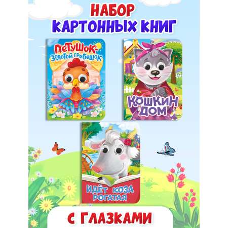 Книжки картонные Проф-Пресс с глазками. 3 шт. Идет коза рогатая+Кошкин дом+Петушок золотой гребешок