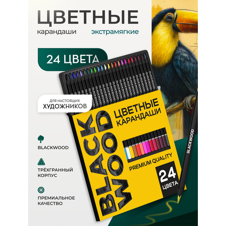 Цветные карандаши Blackwood от DENKSY с супермягким грифелем 24 цвета в картонной упаковке. Карандаши премиум качества из черного дерева с ярким и мягким грифелем, диаметром 3 мм. Мягкие цветные карандаши Блэквуд имеют трехгранную форму корпуса. Набор цветных карандашей также отлично подходит для использования в школе. Они не только помогут вашему ребенку раскрыть свои творческие способности, но и будут полезны при выполнении заданий по изобразительному искусству. Супер мягкий, но ударопрочный грифель позволит добиться необходимой насыщенности цвета почти без усилий. Тонкий помол пигментов даст возможность получения плавных цветовых переходов. Большой подарочный набор цветных карандашей станут незаменимым аксессуаром в вашей школьной канцелярии или концелярии для рисования. Эти карандаши — отличный выбор для школьников и студентов, а также для всех, кто увлекается рисованием и творчеством. Они подойдут для школы в качестве детских карандашей для рисования - так как насыщенность высокая, ребенку не придется сильно давить на карандаши. Цветные карандаши из черного дерева - это отличный подарок художнику на новый год, 23 февраля, 8 марта.