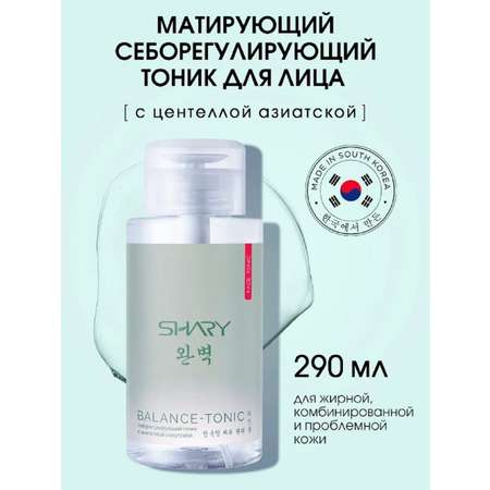 Себорегулирующий матирующий тоник Shary с центеллой азиатской для жирной, комбинированной и проблемной кожи лица 290 мл