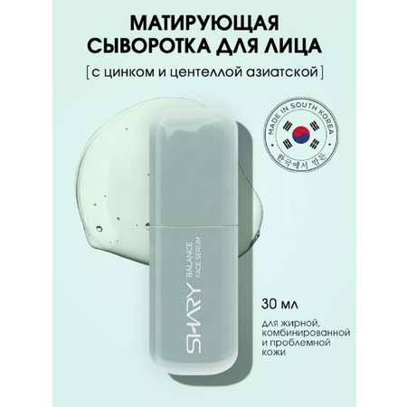 Себорегулирующая матирующая баланс-сыворотка с цинком и центеллой азиатской для проблемной кожи лица Shary Perfect Skin, 30 мл