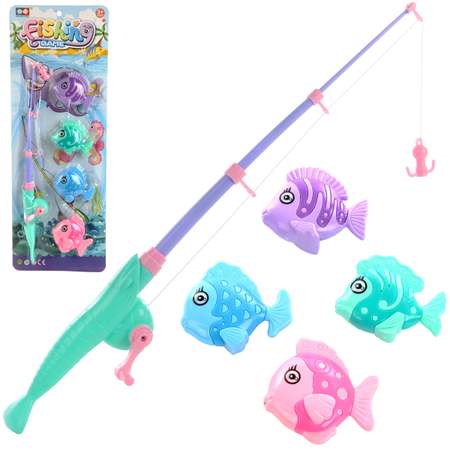 Время веселой и увлекательной рыбалки. Кто больше всех поймает рыбок, тот и победил. В комплект входят удочка и 4 рыбки. На носиках рыбок есть магнитные элементы, у удочки намагничен крючок, благодаря этому рыбки легко ловятся. Катушка у удочки крутится, леска-веревка отматывается. Игрушка отлично развивает зрительное восприятие, мелкую моторику ручек, координацию движений и воображение. Этот яркий и красивый набор превратит обычное купание малыша в интересную игру. Игрушка представлена в ассортименте.