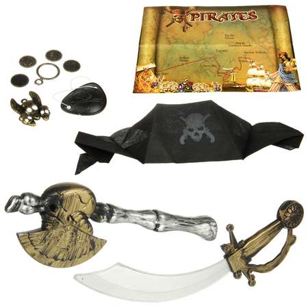 Йохохо, в этом наборе есть все, чтобы почувствовать себя пиратом и отправиться в увлекательное путешествие за сокровищами. В комплект входят топорик, шляпа, сабля, кулон, серьга и фигурки-имитации монеток. Благодаря набору можно придумать огромное количество интересных и захватывающих сюжетно-ролевых игр.