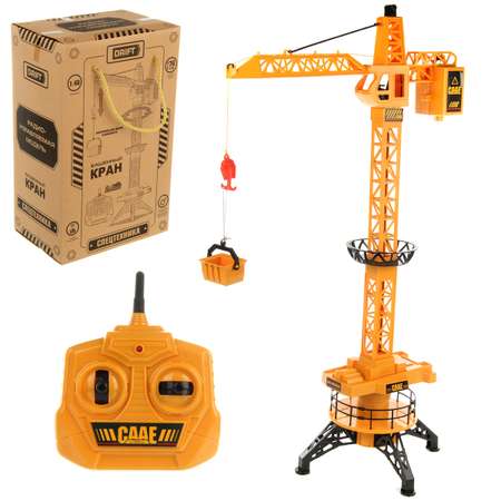 Игрушка подъемный кран на радиоуправлении. Реалистичный дизайн и красивая расцветка понравятся каждому ребенку. Спецтехника в уменьшенном размере для увлекательных сюжетно-ролевых игр. В комплект входят детали для сборки крана и пульт управления, ведро.
