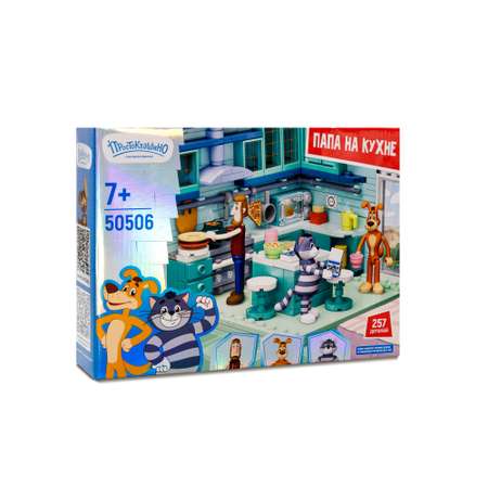 Помогите Папе из Простоквашино накормить семью - соберите для него его уютную кухню. Этот конструктор - отличная возможность для ребенка не только отлично провести время за увлекательной сборкой, но и поиграть в повара. В набор входят полноценный кухонный гарнитур с плитой, шкафчиками с посудой и столиком. Это позволит ребенку пофантазировать, какой кулинарный шедевр приготовят Папа и Матроскин или Шарик. Их фигурки входят в комплект. Набор изготовлен из высококачественных безопасных материалов и рекомендован для детей от 7 лет. Количество деталей 251.