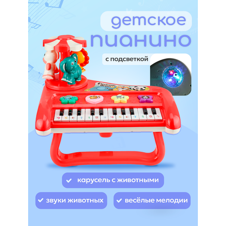 Функции: карусель на пианино крутится, проектор находится на нижней части пианино, светится, 4 кнопки с животными подсвечиваются, кнопка переключения режимов находится на клавиатуре.