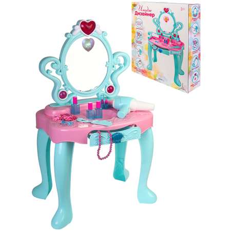 Столик для макияжа-1 "ИМИДЖ ДИЗАЙНЕР" — превосходный подарок для юной модницы! Он позволит каждой девочке почувствовать себя настоящим мастером в салоне красоты. Столик оснащен световыми, звуковыми и визуальными эффектами. Включаются нажатием на кнопку в форме сердца на раме, над зеркалом. В "волшебном зеркале" появляется фото "принцессы". Играя с этим набором, малышка учится чувству вкуса и стиля, постигая мир красоты и моды, развивает социальные навыки и воображение.