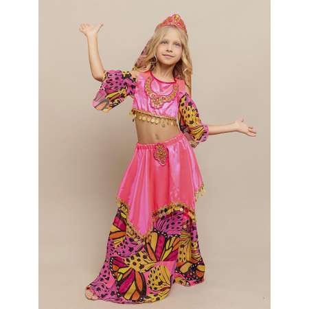 Карнавальный костюм «Шахерезада» — изящный восточный образ для праздников, утренников и сценических выступлений. В комплект входят топ, брюки и головной убор, выполненные из лёгкого шифона и блестящего сатина. Яркий и эффектный наряд поможет ребёнку почувствовать себя настоящей героиней восточной сказки.