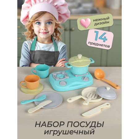 Кухонный детский набор посуды с аксессуарами. Игрушка для девочки со съемными крышками, большое количество предметов, компактные размеры, удобно для детских рук. Игрушечная посуда оформлена в красивом дизайне и качественном исполнении, имитация керамики. Игрушечная кухонная техника изготовлена из прочных и безопасных материалов, разнообразит сюжетно ролевые игры, станет замечательным подарком девочке на Новый год, День рождения, 8 марта.