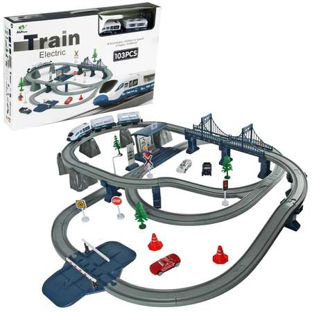 Игрушечная железная дорога с большим количеством аксессуаров. Простая сборка, локомотив с движением вперёд, магнитная сцепка вагонов, остановка со звуками гудка, стука колёс и подсветкой лампочки, участок рельс со звуками железнодорожного переезда, стука колес, гудка, подвижные элементы, смена направления движения поезда путем перевода стрелочных механизмов, железнодорожный переезд с функцией остановки движения локомотива. Игрушка изготовлена из прочных и безопасных материалов в качественном исполнении с вниманием к деталям.