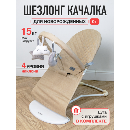 Детский складной шезлонг Mamagoods для новорожденных от 0 кресло качалка для малышей бежевый лен