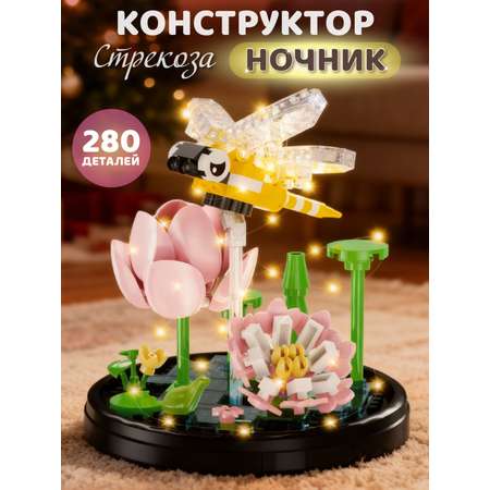Конструктор ночник "Стрекоза в цветах" - это настоящее произведение искусства, гармония эстетики, увлекательного творчества и уютного света.