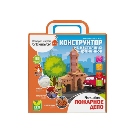 Конструктор детский из настоящих кирпичиков Брикмастер - уникальный, интересный и познавательный набор. Элементы конструктора – самые настоящие кирпичи в уменьшенном виде. Они изготавливаются из обожженной глины по технологии настоящих кирпичей, но в миниатюре. В набор строителя детский входит: настоящие керамические кирпичики (керамика), строительная смесь для скрепления кирпичиков, мастерок. В наборе есть все для строительства. Такой детский конструктор - очень реалистичный вариант для создания множества моделей, в ассортименте также есть: конструктор домик, мельница, домик Бабы Яги, родник, замок, кремль, беседка, маяк и тд. Чтобы соединить детали конструктора – кирпичики детские, нужен мастерок строительный и раствор (специальная смесь плюс вода). Чтобы собрать конструктор, не нужен клей. Конструктор из настоящих кирпичиков Brikmaster безопасен для детей и малышей – ничего вредного, только натуральные элементы – смесь и кирпичи. Если получившаяся 3д модель не понравится, то можно с легкостью переделать, для этого достаточно только погрузить конструкцию в воду на некоторое время, сполоснуть, просушить и снова начать строительство. Никакой строительной техники не понадобиться, чтобы разрушить сделанную модель 3д конструктор. Каждый ребенок сможет почувствовать себя как юный архитектор и строитель. С помощью конструктора можно изучить геометрические формы и фигуры. Такой набор строителя станет отличным подарком не только ребенку, но и как отличный подарок строителю. Развивающий подарок подойдет для мальчика, девочки, первоклассника, для юного строителя. Можно приобрести в качестве подарков на целую группу в детский сад (детсад), на праздник Новый год (к Новому году, новогодний), 23 февраля, 8 марта, День рождения, 1 сентября, выпускной из садика или просто так. Можно использовать как дома, в детском садике, так и на даче. Натуральные и экологичные материалы: крахмал, песок, керамика. Размер конструктора: 25см x 24см x 8см. В Наборе 186 деталей. Сделано в России