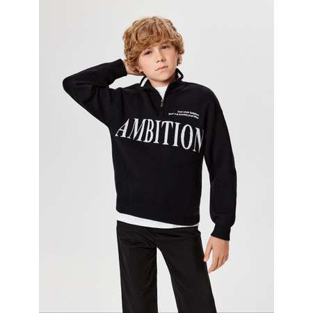 Детский вязаный свитер на молнии — стильная модель для создания модных образов в демисезон. Джемпер с воротником-стойкой комфортен в ношении и незаменим в холодную погоду. Модель выполнена из мягкой и приятной на ощупь пряжи. Прямой силуэт со спущенной линией плеча дарит свободу движений и возможность создавать многослойные демисезонные образы. Спереди расположена короткая застежка-молния, облегчающая одевание. Низ изделия и рукавов выполнены в виде эластичных манжет для лучшего прилегания к телу и сохранения тепла. На груди вывязан принт с вдохновляющими надписями "DON'T CREATE LIMITATIONS | NEVER STOP DREAMING GREAT THINGS | AMBITION" [англ. - "Не создавай ограничения | Никогда не переставай мечтать о больших вещах | Амбиции"]. Модель представлена в двух цветах: черном и темно-синем. Комбинируйте свитер с джинсами или брюками-чиносами для создания стильного образа.