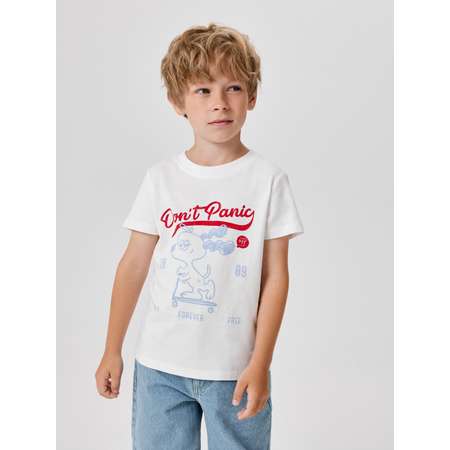Детская футболка для мальчика – это стильное и практичное дополнение к повседневному гардеробу ребенка. Модель выполнена из мягкого трикотажного полотна, которое позволяет коже дышать. Футболка посадки regular отличается приталенным кроем и стандартной длиной рукава, что обеспечивает комфортную посадку по фигуре. Округлая горловина не мешает при одевании. Спереди расположен принт в виде собаки на самокате и надписей "DON'T PANIC | OFF | STAY FOREVER FREE" [англ. - "Без паники | Выключить | Оставайтесь навсегда свободными"], что придает футболке оригинальности. Модель представлена в четырех цветах: молочном, голубом, бежевом, бирюзовом. Стилизуйте футболку с джинсами для создания образа на каждый день. Рост модели на фото 114,5 см.