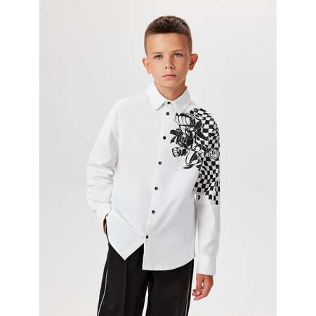 Детская сорочка с длинным рукавом для мальчика – это стильное и практичное дополнение к гардеробу ребенка. Модель выполнена из плотной ткани, что создает приятные ощущения на коже. Центральная застежка на металлические кнопки позволяет легко и быстро переодеваться. Рубашечный воротник-стойка добавляет изделию завершенный вид. С передней детали на рукав переходит контрастный принт в геймерском стиле и надпись "PLAY GAMES" [англ. - "Играть в игры"], что придает модели стильный акцент. Рубашка с длинным рукавом подходит для ношения в любое время года. Манжеты с кнопками и со шлицами позволяют регулировать ширину рукава. В коллекции представлена модель в черном цвете (20140280194). Стилизуйте рубашку со второй рубашкой и брюками, чтобы создать модный многослойный лук. Рост модели на фото 144. Размер на модели 140. 20130280032 20130280032