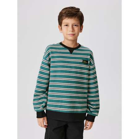 Детский свитшот в полоску для мальчика выполнен из мягкого хлопкового футера с петлями внутри (без начеса), который обеспечивает комфортное ношение на протяжении всего дня. Свитшот посадки comfort предполагает свободный крой с приспущенной линией плеча, а также увеличенные объем и длину рукава. Всё это дарит большую свободу движений и модный расслабленный силуэт, которые особенно важны для активных мальчиков. Удобная округлая горловина, манжеты и низ изделия выполнены из контрастного рибового полотна, которое обеспечивает плотное прилегание к телу и сохранение формы. На груди расположена небольшая декоративная нашивка с надписью "TIME TO ARCHIVE OLD RECORDS" [англ. - "Время архивировать старые записи"], которая придает стильный акцент. Модель представлена в двух цветах: в зеленую и в розовую полоску. Комбинируйте свитшот с джинсами или брюками, чтобы составить стильный лук на каждый день.