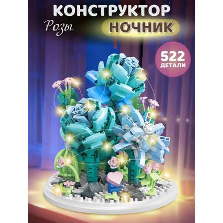 Конструктор ночник Голубая роза 522 детали JB9800125