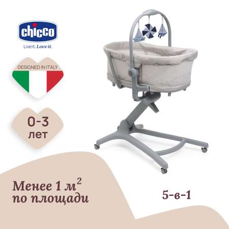 Цена на Детская кроватка Chicco Baby Hug Pro 5в1 с рождения до 3 лет Beige Latte овальная, поперечный маятник - 27047 ₽.