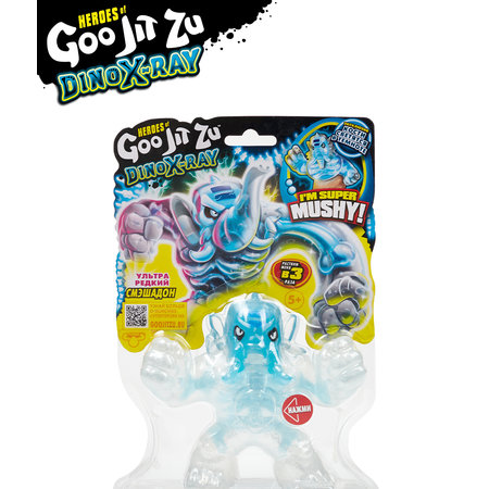 Вау! Теперь у них есть кости! Герои Гуджитсу серии Дино Икс-Рэй возвращаются! Стань героем и сразись с ультраредким Смэшадоном в битве доисторических монстров! Зацени, на что он способен: Смэшадон может растягиваться в 3 раза и легко принимать свой первоначальный облик. Смэшадон познал дикую силу Дино Икс-Рэй! Он крут не только снаружи, но и внутри! Сожми Смэшадона и рассмотри его мощный Дино-скелет! Познай мощь свирепого героя: похрусти его костями в темноте и оцени как они светятся также, как и его мощный череп. Тянущаяся фигурка Смэшадон Дино Икс-Рэй Гуджитсу приятна на ощупь, растягивается в 3 раза. Внутри игрушки высотой 12 см кости голубого цвета и жидкость с блестками. Голова и кости фигурки светятся в темноте. Состав: ПВХ, ТПР, АБС, ПЭТ, вода. Товар сертифицирован и безопасен для детского использования. Упаковка: блистер
