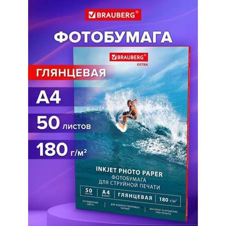 Фотобумага глянцевая А4 BRAUBERG EXTRA — идеальный выбор для качественной печати фото. Благодаря плотности 180 г/м2 и одностороннему покрытию, эта фото бумага исключает просвечивание и обеспечивает насыщенную, яркую цветопередачу с глубокой детализацией. Гладкая поверхность фотобумаги создаёт превосходное качество изображений, а улучшенное покрытие позволяет получить реалистичные и живые фотографии при печати на всех струйных принтерах с водорастворимыми чернилами. Этот набор из 50 листов идеально подходит для домашнего и профессионального использования, обеспечивая стабильный результат при печати черно-белых и цветных фото, рекламы, портфолио и других материалов. Выбирая эту фотобумагу А4, вы получаете надёжный материал для печати фотографий, который раскрывает все преимущества глянцевой поверхности и гарантирует яркие, чёткие изображения.