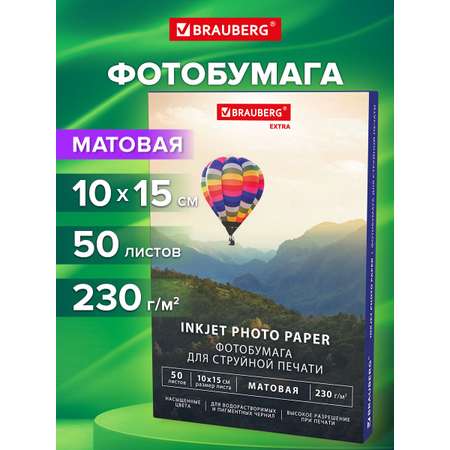 Фотобумага матовая BRAUBERG EXTRA — идеальный выбор для качественной печати фото в формате 10х15 см. Благодаря плотности 230 г/м2 и одностороннему покрытию, эта фото бумага исключает просвечивание и обеспечивает насыщенную, яркую цветопередачу с глубокой детализацией. Гладкая поверхность фотобумаги создаёт превосходное качество изображений, а улучшенное покрытие позволяет получить реалистичные и живые фотографии при печати на всех струйных принтерах с водорастворимыми чернилами. Этот набор из 50 листов идеально подходит для домашнего и профессионального использования, обеспечивая стабильный результат при печати черно-белых и цветных фото, рекламы, портфолио и других материалов. Выбирая эту фотобумагу 10х15, вы получаете надёжный материал для печати фотографий, который раскрывает все преимущества матовой поверхности и гарантирует яркие, чёткие изображения.