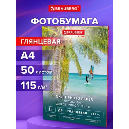 Фотобумага глянцевая А4 BRAUBERG EXTRA — идеальный выбор для качественной печати фото. Благодаря плотности 115 г/м2 и одностороннему покрытию, эта фото бумага исключает просвечивание и обеспечивает насыщенную, яркую цветопередачу с глубокой детализацией. Гладкая поверхность фотобумаги создаёт превосходное качество изображений, а улучшенное покрытие позволяет получить реалистичные и живые фотографии при печати на всех струйных принтерах с водорастворимыми чернилами. Этот набор из 50 листов идеально подходит для домашнего и профессионального использования, обеспечивая стабильный результат при печати черно-белых и цветных фото, рекламы, портфолио и других материалов. Выбирая эту фотобумагу А4, вы получаете надёжный материал для печати фотографий, который раскрывает все преимущества глянцевой поверхности и гарантирует яркие, чёткие изображения.
