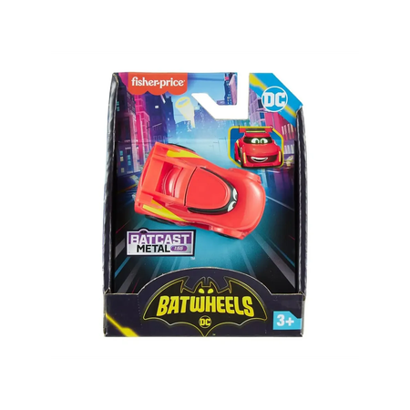 Коллекция литых машинок Batcast Metal в масштабе 1:55 с персонажами Batwheels, включая Бэтмобиль Бэма, Пранка, Биби, Редберда и Баффа.