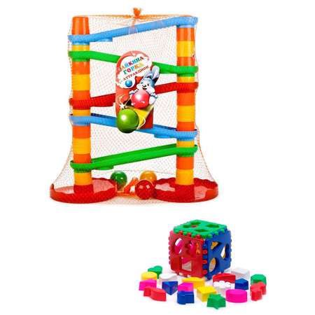 Детский развивающий набор для малышей Пирамидка Зайкина горка аттракцион с шариками + Кубик сортер логический большой