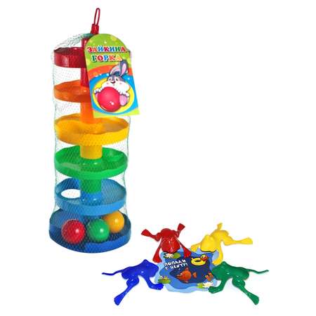 Детский развивающий набор для малышей Пирамидка Зайкина горка с шариками + Игрушки лягушки