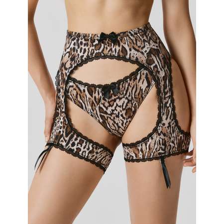 Женский комплект состоит из трусов-брифов и пояса для чулок с леопардовым принтом. Трусы выполнены из эластичного полотна, которое придает изделию стильный и элегантный вид. По линии талии пришито контрастное кружево, что добавляет нотку женственности и нежности. Спереди расположен бантик для акцента. Ластовица из мягкого 100%-ного хлопка обеспечивает комфорт в ношении. В сет входит пояс для чулок с подвязками. По внешним сторонам модели пришито узкое кружево, которое придает завершенности и утонченности. Пояс застегивается на два ряда крючков и петель. Спереди расположен бантик, который добавляет очаровательный акцент. Стрэпы для чулок регулируются по длине. Соберите притягательный комплект нижнего белья, добавив к трусам и поясу для чулок бюстгальтер (31204111453) с леопардовым принтом.