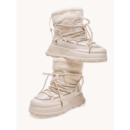 Школьные полусапожки для девочки — это дутики «на каждый день», когда нужна защита зимой и в режим «еврозима». Верх: текстильные материалы (плотный материал, который не боится слякоти).Это непромокаемые модели. Внутри шерсть — поэтому ботинки по-настоящему теплые и уверенно утепленные. Высокие берцы плюс боковая молния дают комфортную посадку и фиксацию. Ботинки удобные в школе и на улице. Подошва — сплошная, платформа, высокая и одновременно толстая. Хорошо амортизирует шаг. Она нескользящая и с протектором, стабильно держит на плитке и укатанном снегу. Бежевый тон легко собирает casual-образы. Легкие по весу и прикольные по виду, немного необычные «сапоги-ботинки» остаются детскими по размеру и школьными по назначению — практичные и сдержанные, без лишних элементов и рисунка.