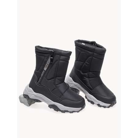 Полусапожки зимние для мальчиков — это практичные дутики «на каждый день», когда нужна школьная пара, которая выдержит и походы на школьные уроки, и двор. Верх — износостойкий текстиль: полусапожки текстильные, непромокаемые и по-настоящему водонепроницаемые, поэтому зима и демисезон проходят без луж внутри. Модель — еврозима, поэтому считается универсальной. Внутри — мягкая шерсть, ботинки утепленные, поэтому в них не холодно даже в сильный мороз. Высокие берцы и боковая молния дают удобную посадку и плотную фиксацию, а круглый силуэт комфортен в ежедневной носке. Подошва у них массивная, с выраженным протектором. Она хорошо амортизирует, не скользит на плитке и укатанном снегу. Черный цвет универсален: впишется и в традиционный кэжуал, и в супер модный образ. Обувь почти не пачкается, хорошо «держит» форму. Ботинки легкие по весу, удобные на каждый день: от школы до секции. Такой формат «дутики-сапоги» понравится тем, кто любит прикольные и немного необычные модели. Это спортивные башмаки, они детские по размерной сетке — именно для подростков и активных мальчиков, которым нужна надежная, теплая, повседневная обувь без лишних элементов и рисунка.