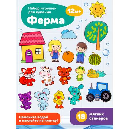 Представляем развивающую игрушку – макси пазлы для малышей, которая сделает время купания веселым и увлекательным. Игровой набор состоит из 18-ти мягких карточек, на которых изображены милые и красочные животные фермы, а также мальчик с девочкой и предметы в деревенской тематике.
