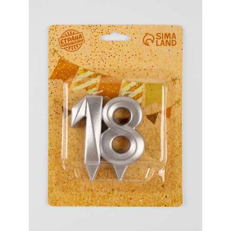Свеча в торт Страна Карнавалия Грань цифра «18» серебро