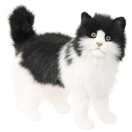 Реалистичная мягкая игрушка Кошка, чёрно-белая бренда HANSA Creation выполнена из высококачественного искусственного меха разных фактур, тщательно подобранных и обработанных вручную с использованием технологий тримминга и художественной тонировки, что придает игрушке точное сходство с оригиналом.