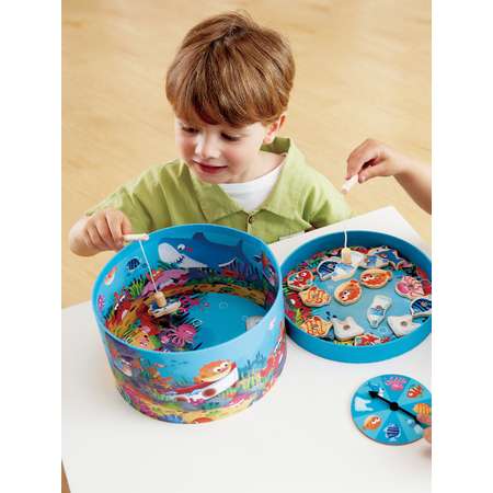 Детская настольная игра Эко Рыбалка - это увлекательная игра, которая направлена на развитие ловкости и внимания ребенка. С помощью специальных удочек с магнитным наконечником вылавливайте не только рыбку, но и мусор, а потом сортируйте. Расскажите ребенку, что нельзя выбрасывать мусор в неположенном месте и загрязнять природу. Коробка и правила игры полностью русифицированные. Комплектация: 2 удочки, круг со стрелкой, 12 морских обитателей (с магнитной вставкой), мусор (бутылки, пакеты) - 6 шт., коробка-цилиндр. Материалы: дерево (бук, фанера), пластик (ABS), бумага, сталь. Возрастные рекомендации: для детей от 2 лет.