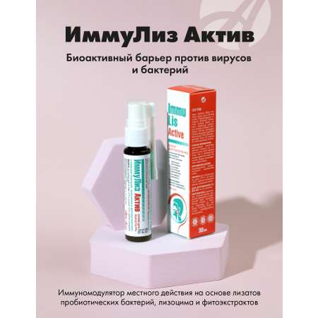 ИммуЛиз Актив – это инновационный иммуномодулятор на основе лизатов пробиотических бактерий, лизоцима и растительных экстрактов. Укрепляет местный иммунитет, борется с вирусами и бактериями, ускоряет восстановление слизистой.