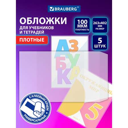 Комплект из 5 плотных обложек ULTRA от BRAUBERG – идеальное решение для защиты школьных учебников, книг с тестами и рабочих тетрадей. Эти прозрачные обложки для учебников и тетрадей изготовлены из высококачественного ориентированного полипропилена толщиной 100 мкм, что обеспечивает надежную защиту от загрязнений и повреждений. Универсальный размер 263х402 мм и глянцевая поверхность позволяют легко подогнать обложку под книги и тетради разных форматов. Благодаря таким обложкам школьные учебные материалы сохранят аккуратный и привлекательный вид на долгое время. Это незаменимые товары для школы канцелярские, которые делают процесс подготовки к учебе удобным, а защиту долговечной. Обложки для тетрадей плотные и безопасные, они не содержат вредных веществ, что особенно важно для детей. Если вы ищете практичную и надежную обложку для учебников, тестов и рабочих тетрадей, этот комплект станет отличным выбором для школьных пособий!