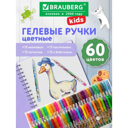 Ручки гелевые BRAUBERG KIDS "CUTE ANIMALS" — идеальный набор для школьников и творческих детей, которые любят работать с цветом и деталями. В этом наборе 60 цветных ручек, включая классические черную и синюю, пастельные, неоновые и с эффектом металлик, а также гелевые ручки с блестками, которые придают рисункам и надписям особое сияние. Круглый корпус с милыми животными делает каждую ручку не только удобной, но и вдохновляющей, а диаметр узла 1 мм и линия письма 0,7 мм обеспечивают плавное и четкое письмо. Благодаря мягкому ходу чернил ручки легко скользят по бумаге, что особенно важно для длительной работы в школе и дома. Этот набор ручек для рисования станет незаменимым помощником для создания ярких и выразительных проектов, развивая фантазию и творческое мышление ребенка.