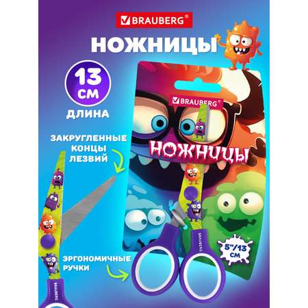 Ножницы 130 мм сиреневые с цветной печатью "Милые монстры" из серии BRAUBERG CUTE MONSTERS — идеальный выбор среди канцелярии для школы и офиса. Эти ножницы канцелярские детские отлично справятся с бумагой и картоном, обеспечивая безопасность за счет закругленных концов и удобство благодаря симметричным ручкам. Изделие сочетает в себе прочность лезвий из нержавеющей стали и стильный дизайн, благодаря которому ножницы идеально впишутся в набор эстетичной канцелярии и сделают процесс творчества увлекательным. Эти канцтовары — незаменимые принадлежности для детей и взрослых, подходящие как для школы, так и для офиса, где важна надежность и комфорт. Воплотите творческие идеи с надежными и безопасными ножницами BRAUBERG!