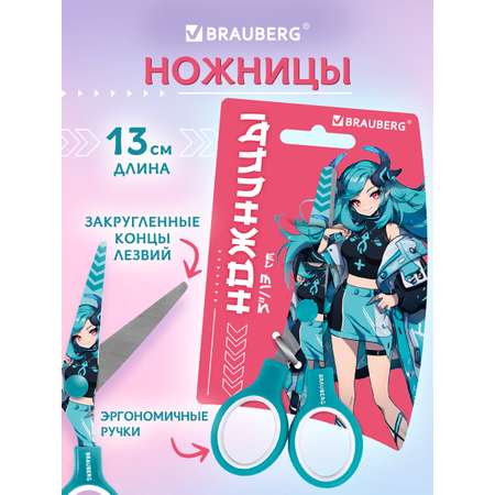 Ножницы 130 мм мятные с цветной печатью "Аниме" из серии BRAUBERG ANIME — идеальный выбор среди канцелярии для школы и офиса. Эти ножницы канцелярские детские отлично справятся с бумагой и картоном, обеспечивая безопасность за счет закругленных концов и удобство благодаря симметричным ручкам. Изделие сочетает в себе прочность лезвий из нержавеющей стали и стильный дизайн, благодаря которому ножницы идеально впишутся в набор эстетичной канцелярии и сделают процесс творчества увлекательным. Эти канцтовары — незаменимые принадлежности для детей и взрослых, подходящие как для школы, так и для офиса, где важна надежность и комфорт. Воплотите творческие идеи с надежными и безопасными ножницами BRAUBERG!
