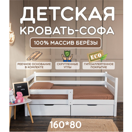 Кроватка детская односпальная, 160х80, кровать с бортиками детская KIDS CITY