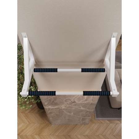 Две перекладины: для подтягивания и для подъема ног. Мягкие неопреновые ручки и крепление в комплекте.