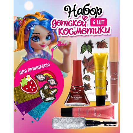 Подарочный набор для девочки из коллекции Fashion Beauty от бренда Lukky — это волшебный бьюти бокс для девочек, где каждая деталь создана, чтобы вдохновить маленькую фешн-звезду на игру, стиль и красоту. Яркий, современный и безопасный, набор косметики для девочки превращает процесс создания образа в настоящее приключение с вау-эффектом. Бьюти бокс детский для девочек состоит из любимых средств: тени 2-в-1 с эффектом аквагрима в модных золотом и розовом оттенках, детский лак для ногтей на водной основе тёмно-вишнёвого цвета, блеск для губ детский с карамельным ароматом и эффектом гладких матовых губ, а также тушь для волос для девочек смывающаяся с серебристыми блёстками, придающая локонам волшебное сияние. Бонусы делают бьюти бокс для девочки ещё ярче: мини-заколки, 3D тату и стильные стикеры для одежды добавляют волшебства, блеска и индивидуальности образу. Каждое средство в наборе разработано по принципам безопасной детской косметики. Формулы содержат облегчённые пигменты, мягкие отдушки, адаптированные под чувствительную детскую кожу. Вся косметика прошла полный цикл сертификации и соответствует требованиям безопасности для детей, легко наносится и смывается водой без использования дополнительных средств. Детский лак для ногтей без ацетона и других агрессивных веществ, только бережный состав. Лак для ногтей детский peel-off легко снимается как плёнка, нужно поместить руки в теплую воду на несколько минут, затем потянуть за край лака-пленки.