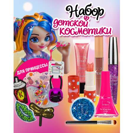 Подарочный набор для девочки из коллекции Fashion Beauty от бренда Lukky — это волшебный бьюти бокс для девочек, где каждая деталь создана, чтобы вдохновить маленькую фешн-звезду на игру, стиль и красоту. Яркий, современный и безопасный, набор косметики для девочки превращает процесс создания образа в настоящее приключение с вау-эффектом. Бьюти бокс детский для девочек состоит из любимых средств: тени 2-в-1 с эффектом аквагрима в розовом металлике, детский лак для ногтей на водной основе в сочном ярко-розовом оттенке, два блеска для губ детских — с ароматом карамели и эффектом матового шёлка, а также перламутровый сиреневый блеск с ароматом чёрной смородины и милым плюшевым брелоком. Тушь для волос для девочек смывающаяся с крупными голографическими блёстками и глиттер для тела и лица, добавляющие сияние и праздничное настроение. Бонусы делают бьюти бокс для девочки ещё ярче: резинка с зажимом, многоразовые стикеры для одежды и набор бусин Café Bijou помогают создать уникальный стиль и раскрыть творческую фантазию. Каждое средство в наборе разработано по принципам безопасной детской косметики. Формулы содержат облегчённые пигменты, мягкие отдушки, адаптированные под чувствительную детскую кожу. Вся косметика прошла полный цикл сертификации и соответствует требованиям безопасности для детей, легко наносится и смывается водой без использования дополнительных средств. Детский лак для ногтей без ацетона и других агрессивных веществ, только бережный состав. Лак для ногтей детский peel-off легко снимается как плёнка, нужно поместить руки в теплую воду на несколько минут, затем потянуть за край лака-пленки. Бокс с косметикой для девочки — станет отличным подарком.
