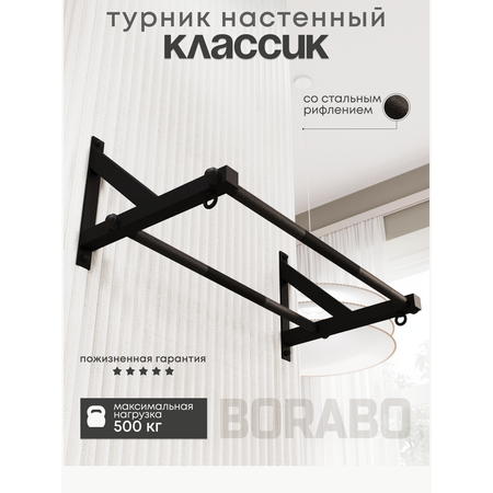 Турник настенный BORABO 2 хвата Классик Black со стальным рифлением хватов