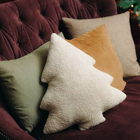 Подушка декоративная в форме ели выполнена из ткани букле, станет завершающим акцентом вашего новогоднего декора. Фактура букле как нельзя лучше передает образ заснеженной ели, а цвет "кофе латте" создаст уют и атмосферу домашнего тепла с чашкой теплого какао в окружении близких.
