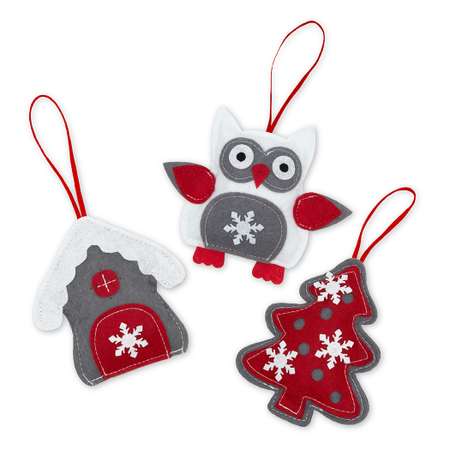 В комплекте вас ждут игрушки на елку: уютный сказочный домик, нарядная новогодняя елочка и мудрая совушка — готовое решение для стильного украшения елки и лучший подарок на Новый Год и Рождество.
