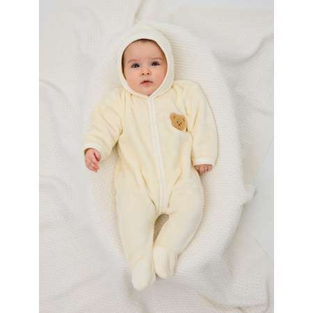 Плюшевый комбинезон для новорождённого это идеальный выбор для комфортных прогулок! Наш плюшевый комбинезон — это идеальный выбор для второго слоя одежды вашего малыша. Модель с капюшоном и застёжкой на кнопки обеспечивает удобство и практичность в использовании. Детский комбинезон изготовлен из мягкого и тёплого велсофта — микрофибры, которая отлично сохраняет тепло. Ваш малыш точно не замёрзнет на прогулке. Комбинезон подходит для новорождённых девочек и мальчиков. Можно использовать в качестве поддевы под демисезонный или зимний комбинезон. Подходит для особых случаев: комбинезон с закрытыми ножками станет отличным вариантом для выписки из роддома и прогулок. Трендовый комбез подходит для домашнего использования в прохладные дни.