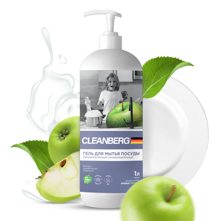 Средство для мытья посуды Cleanberg яблоко 1000 мл 1 шт. 1 упак.